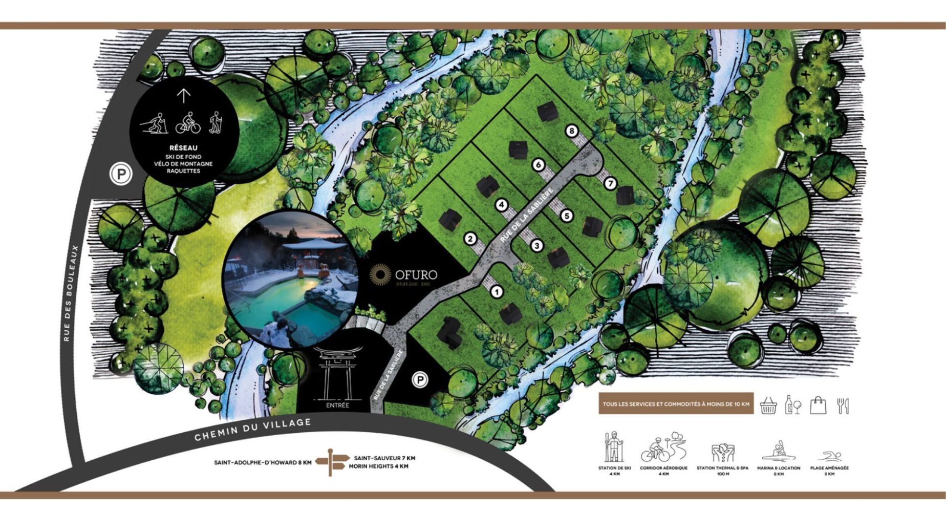 Le projet se trouve directement à côté du Spa Ofuro. Il suffit de faire quelques pas pour s’y rendre et s’offrir l’ultime moment de relaxation après une journée active.