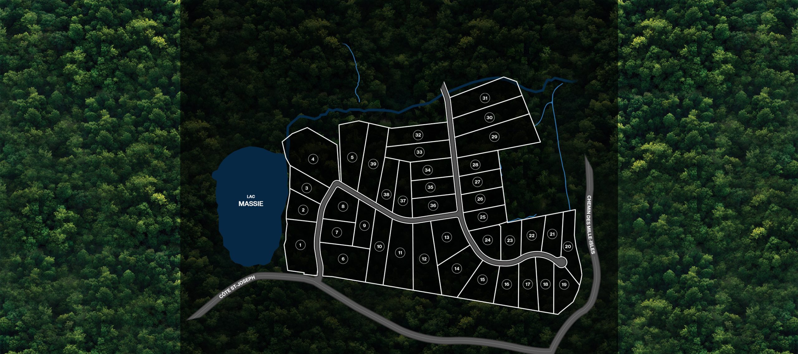 Le projet vous offre la possibilité de posséder un grand terrain en bord du lac Massie avec un accès facile aux sentiers. qui vous assure l’intimité.