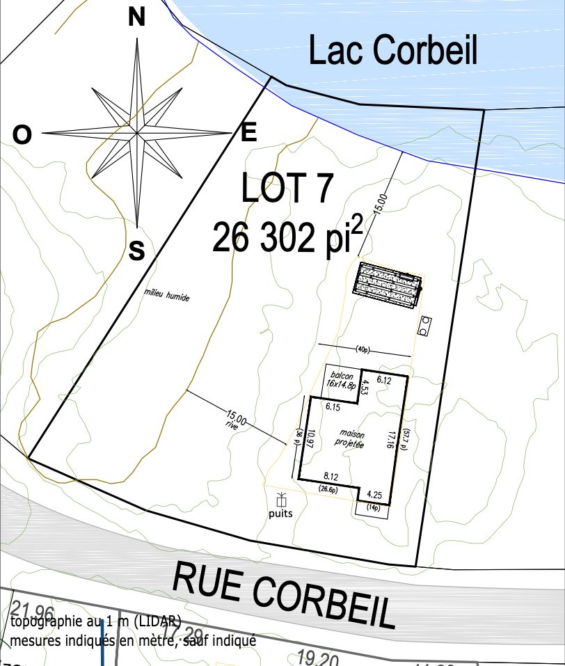Terrain à vendre en bordure du lac Corbeil 26 000 pi²